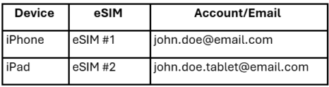 This ensures that each eSIM’s data plan, usage, and billing are managed separately.